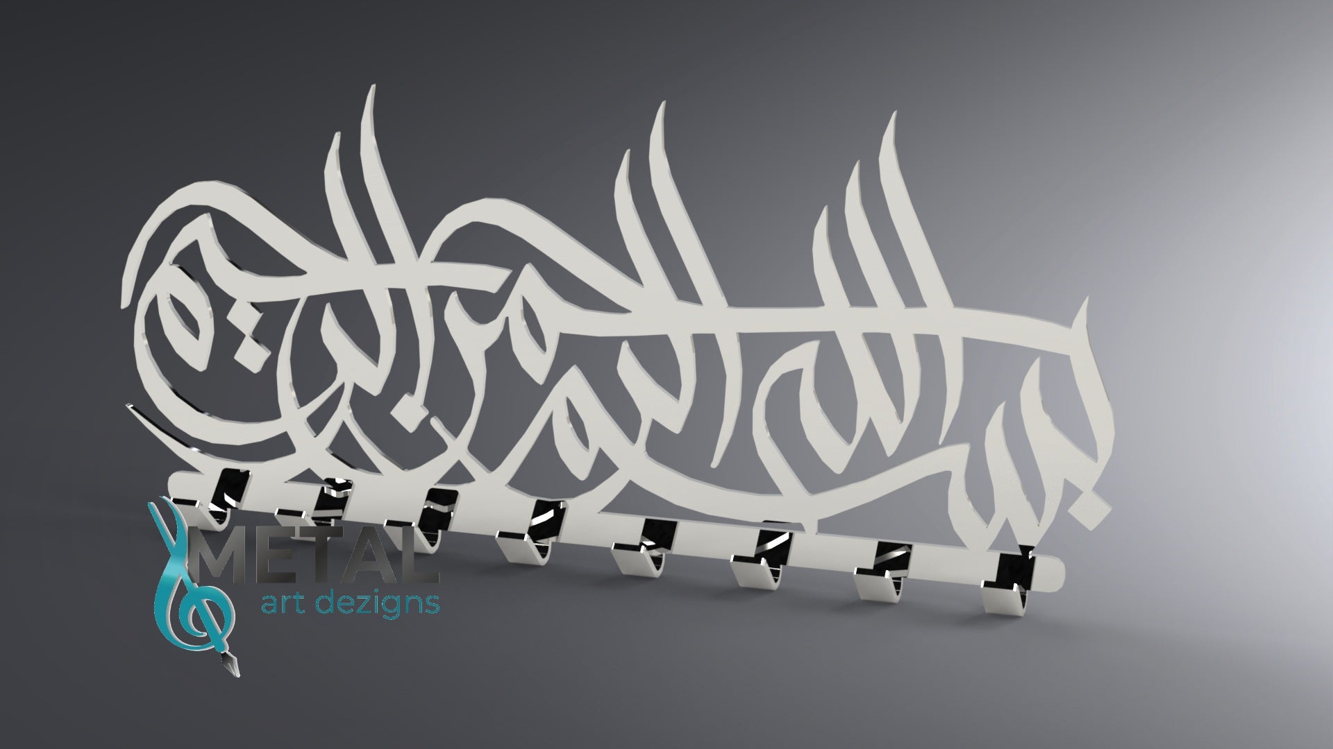 Keep your keys organized in style with this beautifully crafted "Bismillah" Key Holder. Featuring the powerful Arabic phrase "Bismillah", this elegant design adds a touch of spirituality to your home. With space for 8 keys and a sleek, durable powder-coated finish, this key holder blends function and beauty. Sized at 30cm 13x cm, it's perfect for your entryway, keeping your essentials in one easy-to-reach place.